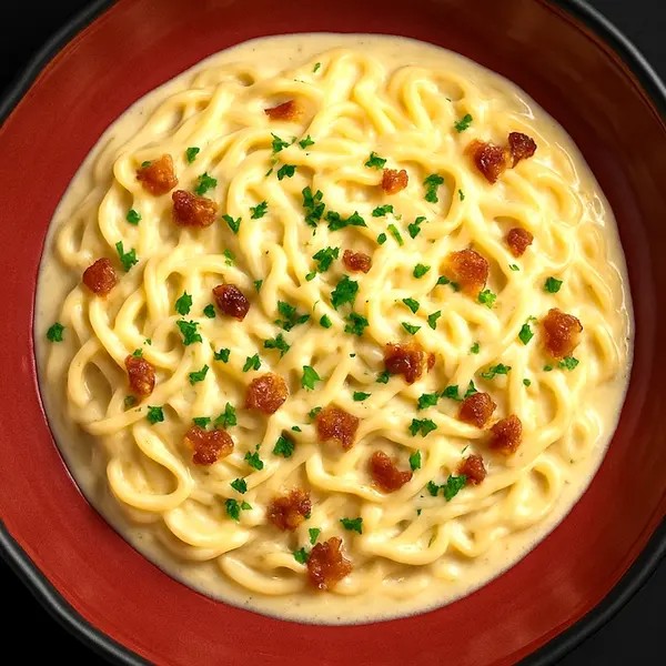 Carbonara com massa artesanal e molho feito com gema de ovo, queijo parmesão, molho branco e bacon. Gratinada com mussarela e parmesão.