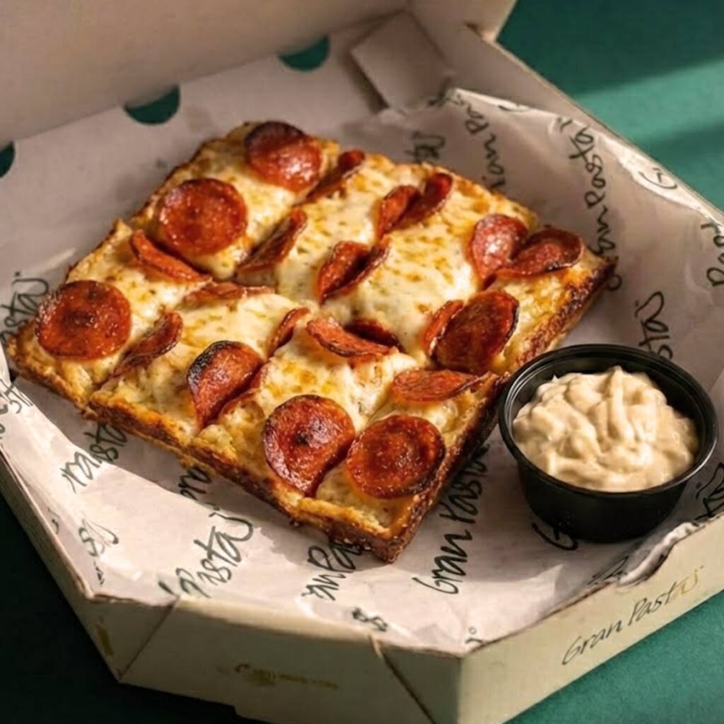 Pãozinho de pizza (8un), recheado com requeijão e gratinado com queijo mussarela, parmesão e pepperoni. Acompanha nosso molho pomodoro (caseiro) e creme de alho.