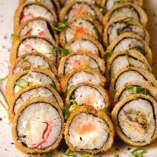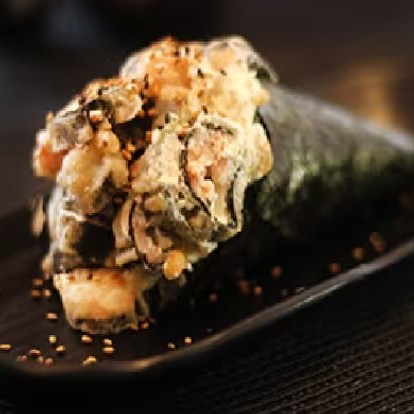 Enrolado crocante com arroz, cheese, salmão ou camarão