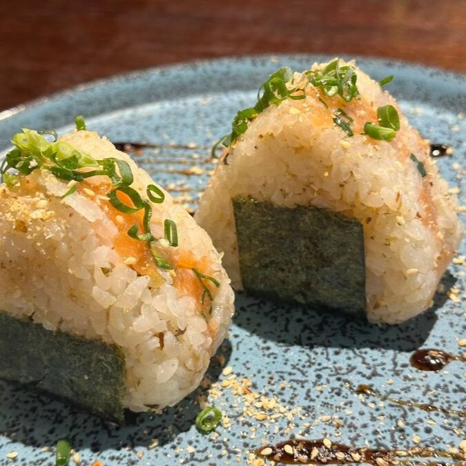 Um clássico japonês, oniguiri de salmão trufado.