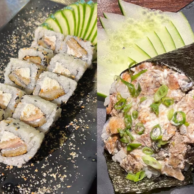 Uramaki grill 4un, crispy rice Salmão trufado 4un.