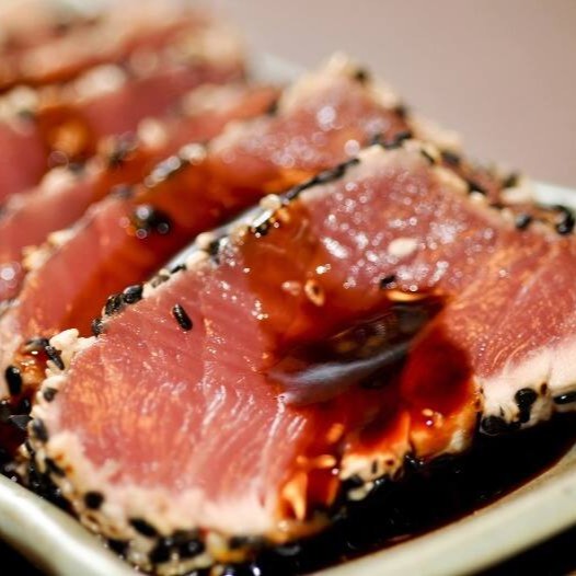 Sashimi de atum selado com canela