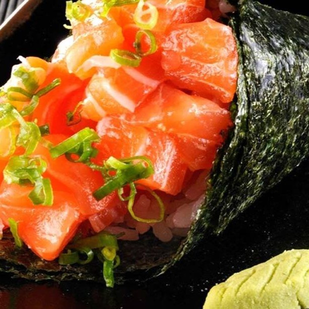 Niguiri de salmão maçaricado e terê