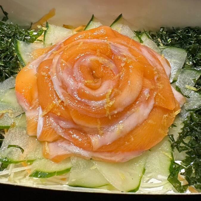 Sashimi de salmão 5un, sashimi de polvo 5un, sashimi de atum selado no gergelim 5un e Joy salmão 4un (low carb)