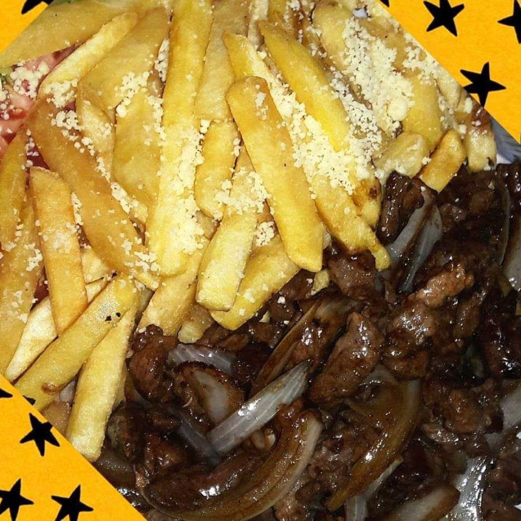 PÃO SÍRIO, FOLÉ DE CARNE, OVO, 2 QUEIJO, 2 PRESUNTO, CHEDDAR, SALADA, CREME ESPECIAL, ACOMPANHA 150 GR DE BATATA FRITA