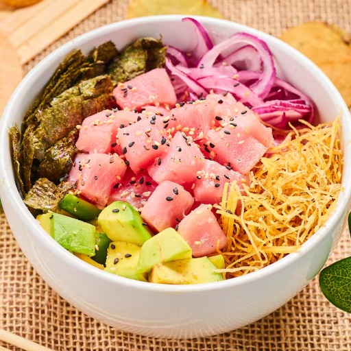Cubos suculentos de atum combinados com o cremoso do abacate e o crocante da batata doce. Cebola roxa, nori e shari complementam essa explosão de sabores em cada mordida!