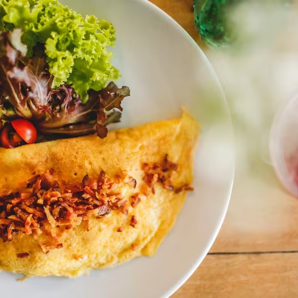 Omelete de frango desfiado com requeijão e crispeis de bacon
