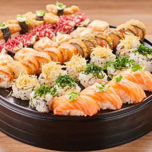 10 niguiris, 12 cariocas, 10 uramakis, 12 hossomakis, 10 sashimis e 6 especiais