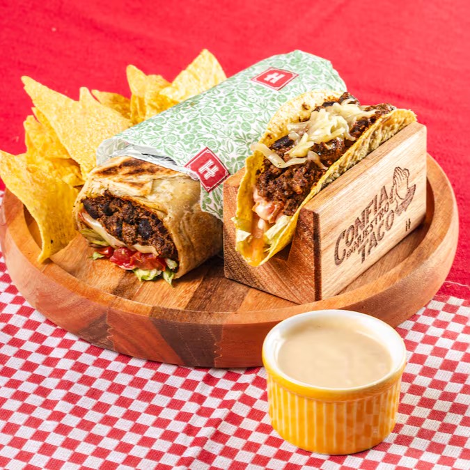 Vem com 1 Burrito Tex, 1 Taco Tex Mex, guacamole cremosa e chips crocantes para completar a experiência. Uma combinação perfeita de sabores marcantes, textura e aquele toque clássico da culinária Tex-Mex. Perfeito para quem quer provar de tudo um pouco e sentir o melhor do México em cada mordida.