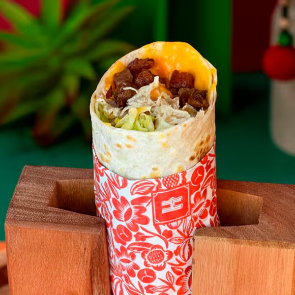 Burrito recheado com frango bem temperado, cheddar cremoso e bacon crocante. Uma combinação clássica, saborosa e irresistível em cada mordida!