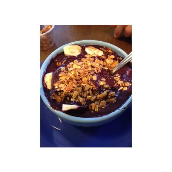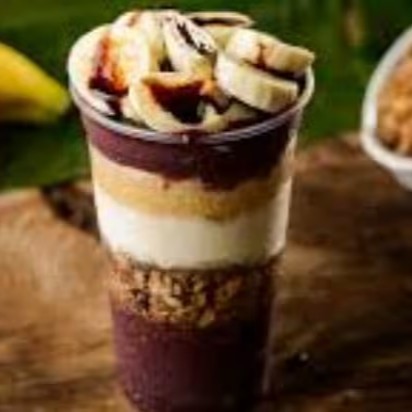 Açaí Super Cremoso, Banana, Granola, Paçoca, Amendoim, Leite em pó.