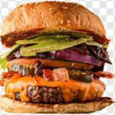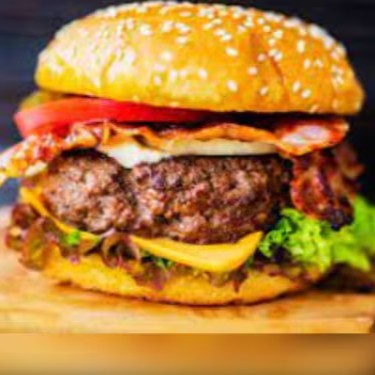 Pão Grande gourmet gengili, carne artesanal 180g, 2 Fatias de queijo cheder, ovo frito ,bacon Frito, Presunto, maionese caseira ,ketchup, batata palha ,salada.