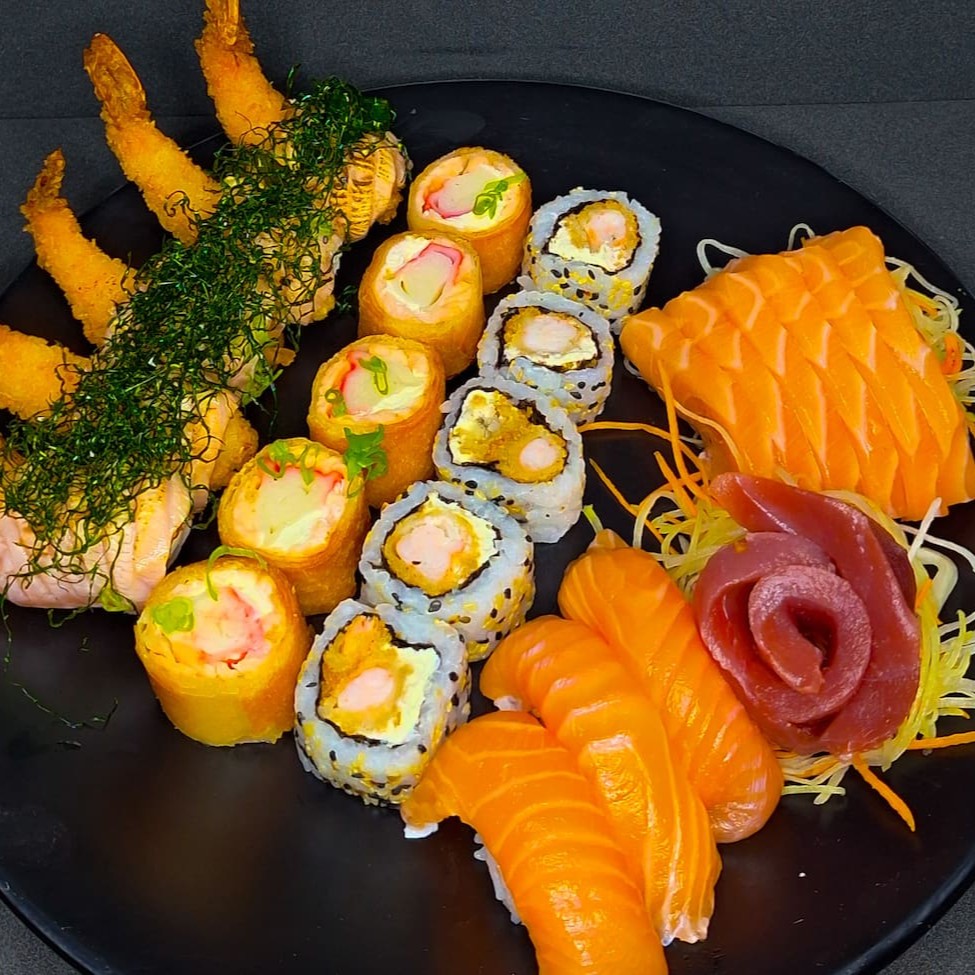 Combinado Degust (36 peças) – Uma seleção perfeita para quem quer provar o melhor dos sabores: 5 sake ebi, 4 joys de salmão, 4 joys de camarão, 5 sashimis de salmão, 5 sashimis de atum, 4 niguiris de salmão, 5 uramakis de salmão e 5 uramakis de camarão empanado. Variedade, frescor e qualidade em cada mordida.