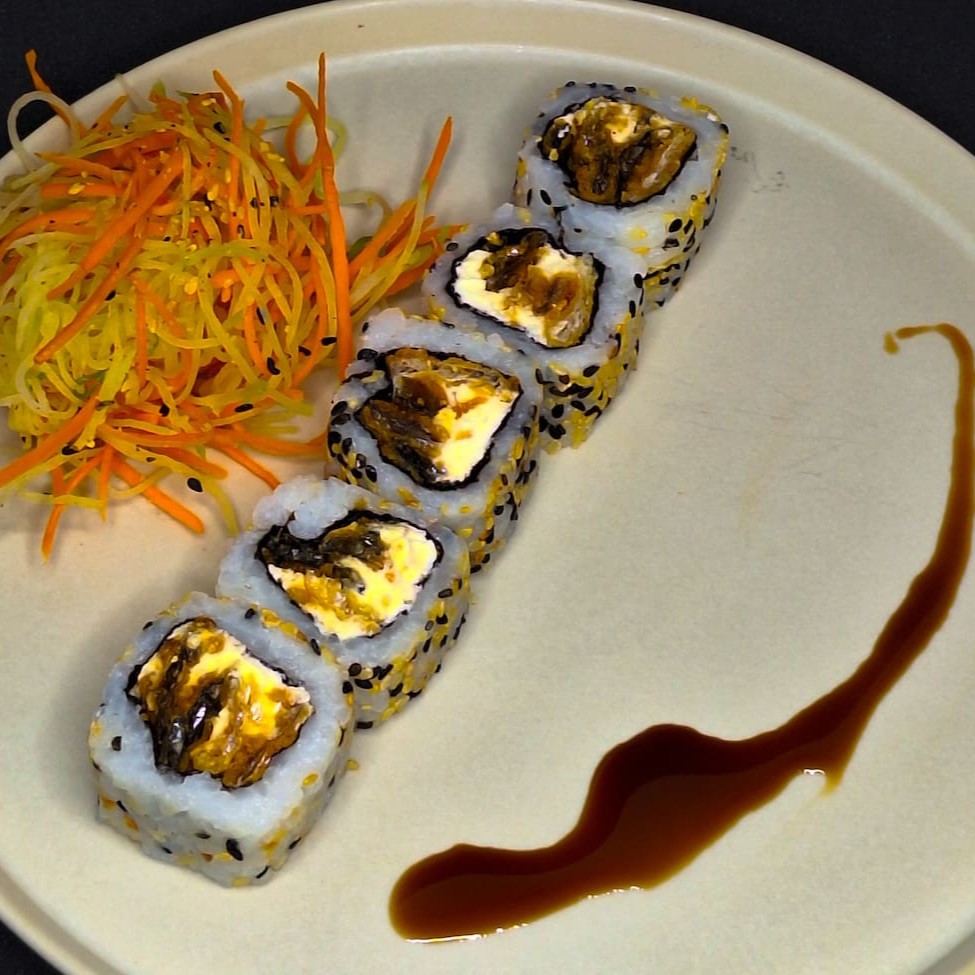 Crocante por fora, cremoso por dentro: enrolado empanado e frito, recheado com pele de salmão crocante e cream cheese. Uma explosão de sabor e textura, perfeita para quem ama sushi quente e marcante.