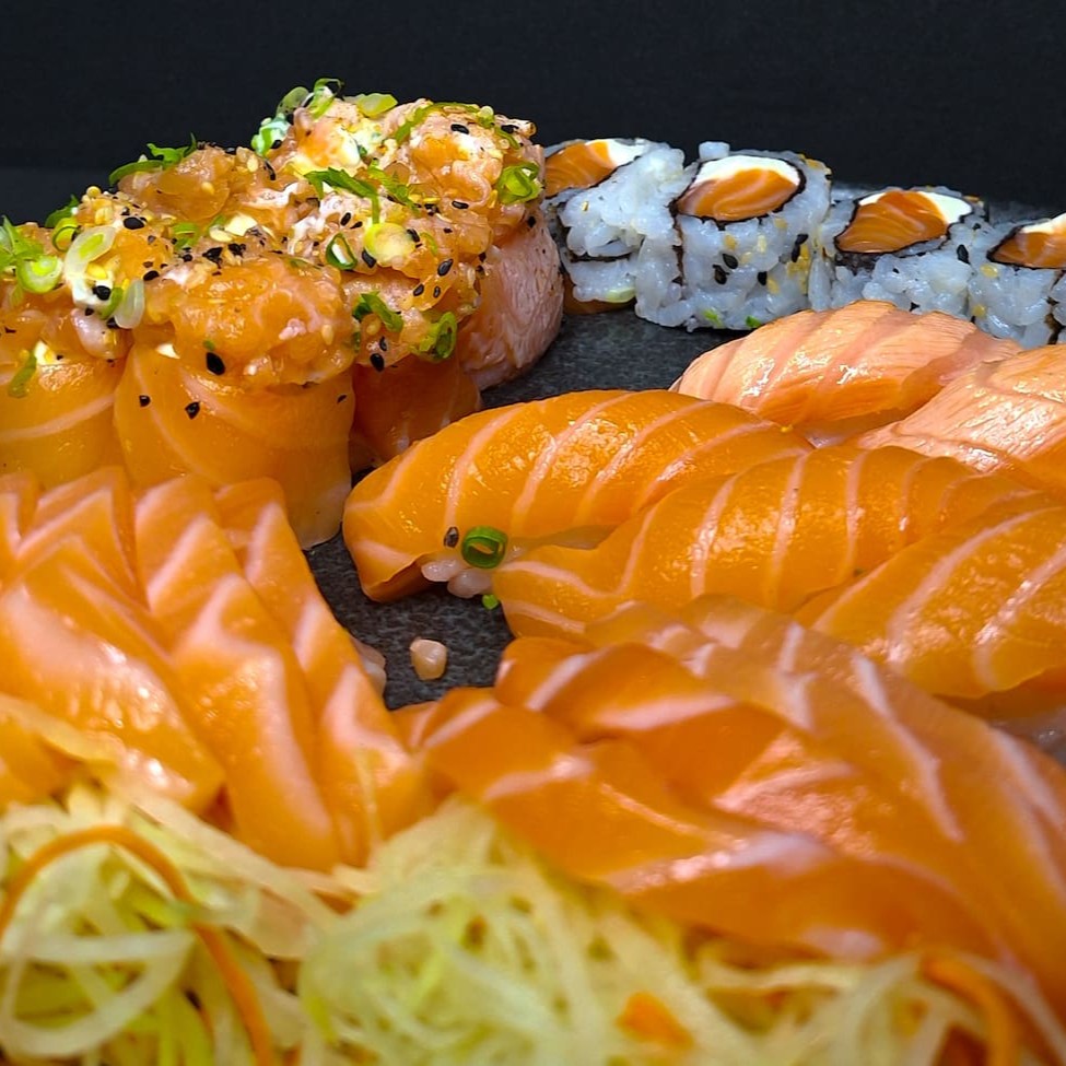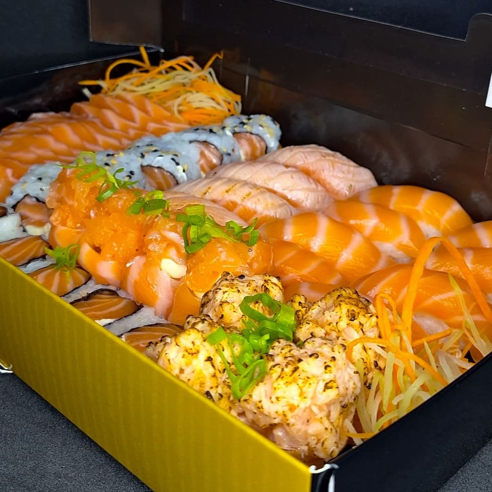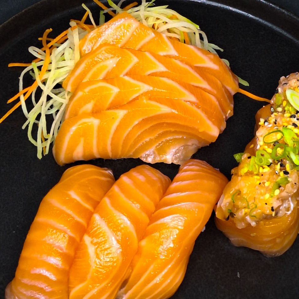 Combo perfeito para quem está sozinho! Delicioso combinado 100% salmão com 4 sashimis frescos, 3 niguiris e 3 joys de salmão — ideal para os amantes desse clássico japonês!