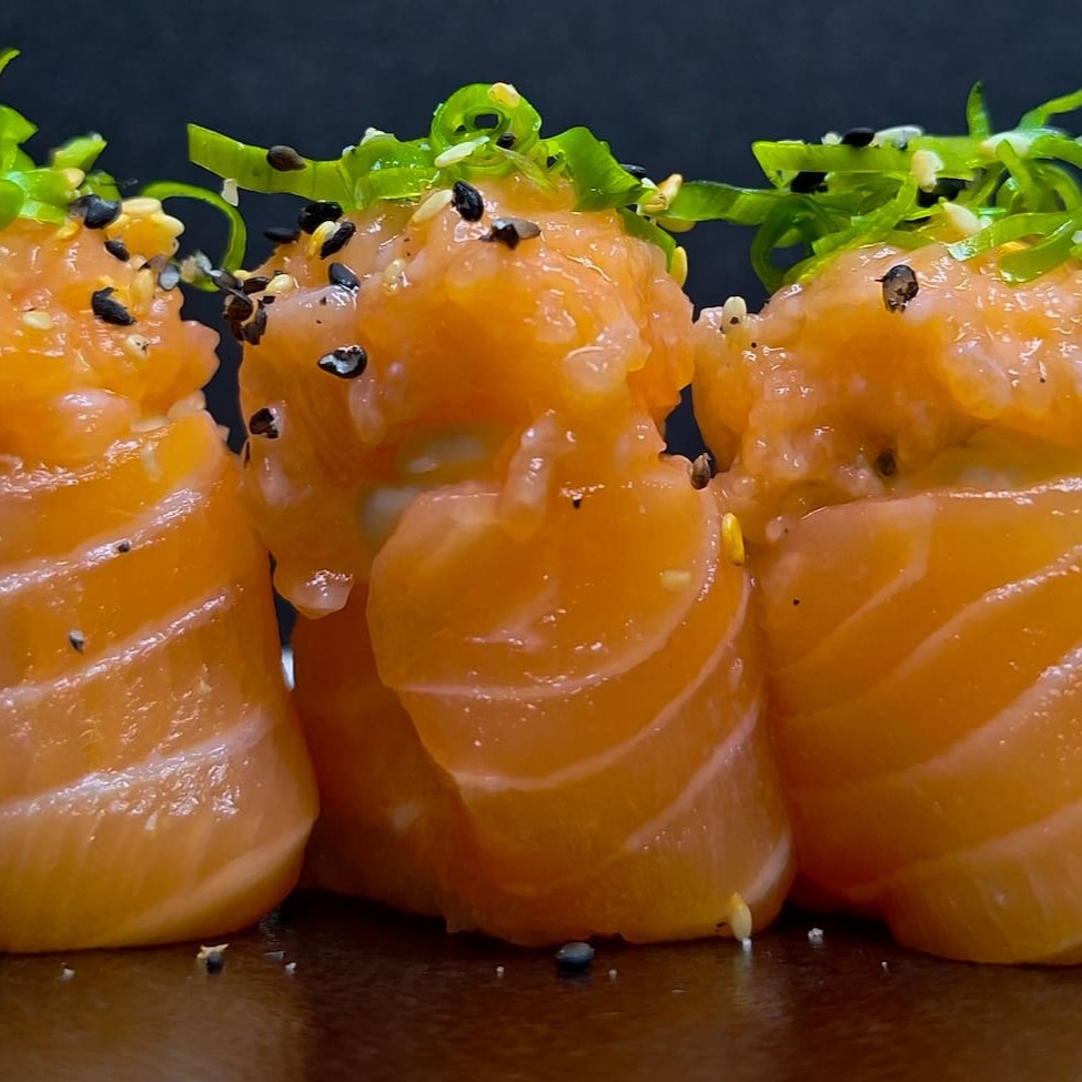 Um clássico sofisticado: base de arroz envolta em salmão fresco, finalizada com cream cheese cremoso e o toque delicado da cebolinha. Equilíbrio perfeito entre frescor, cremosidade e sabor marcante em uma só mordida.
