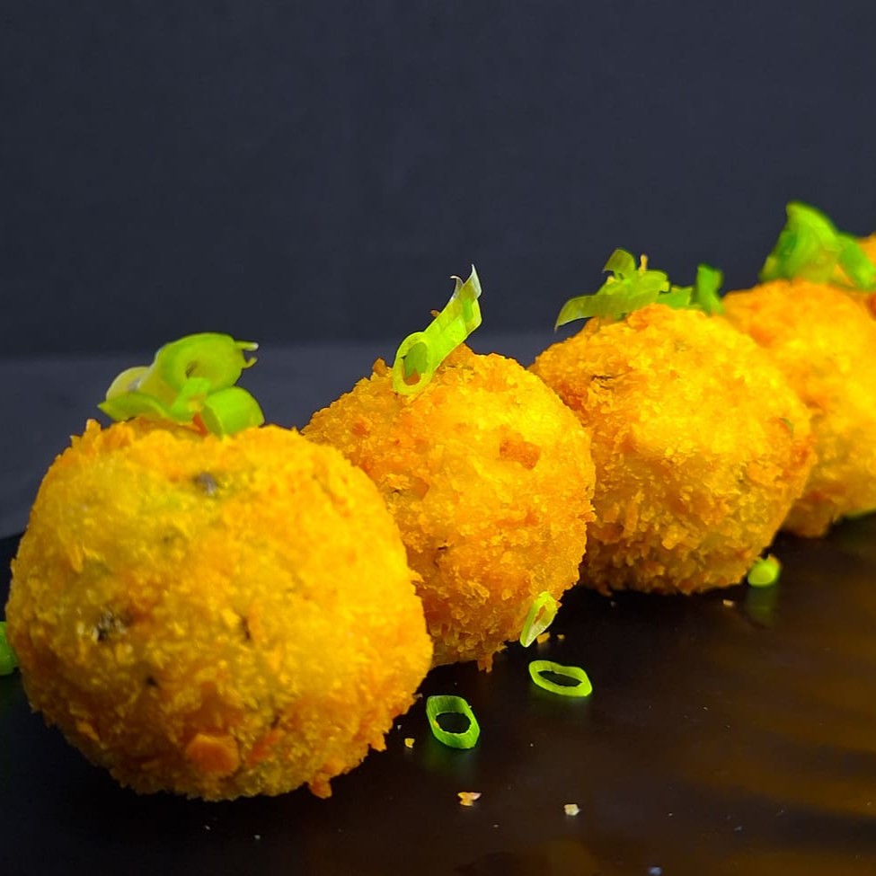 Porção com 5 unidades crocantes por fora e macias por dentro, feitas com arroz temperado e salmão cuidadosamente selecionado. Uma explosão de sabor em cada mordida, perfeita para abrir o apetite ou compartilhar.