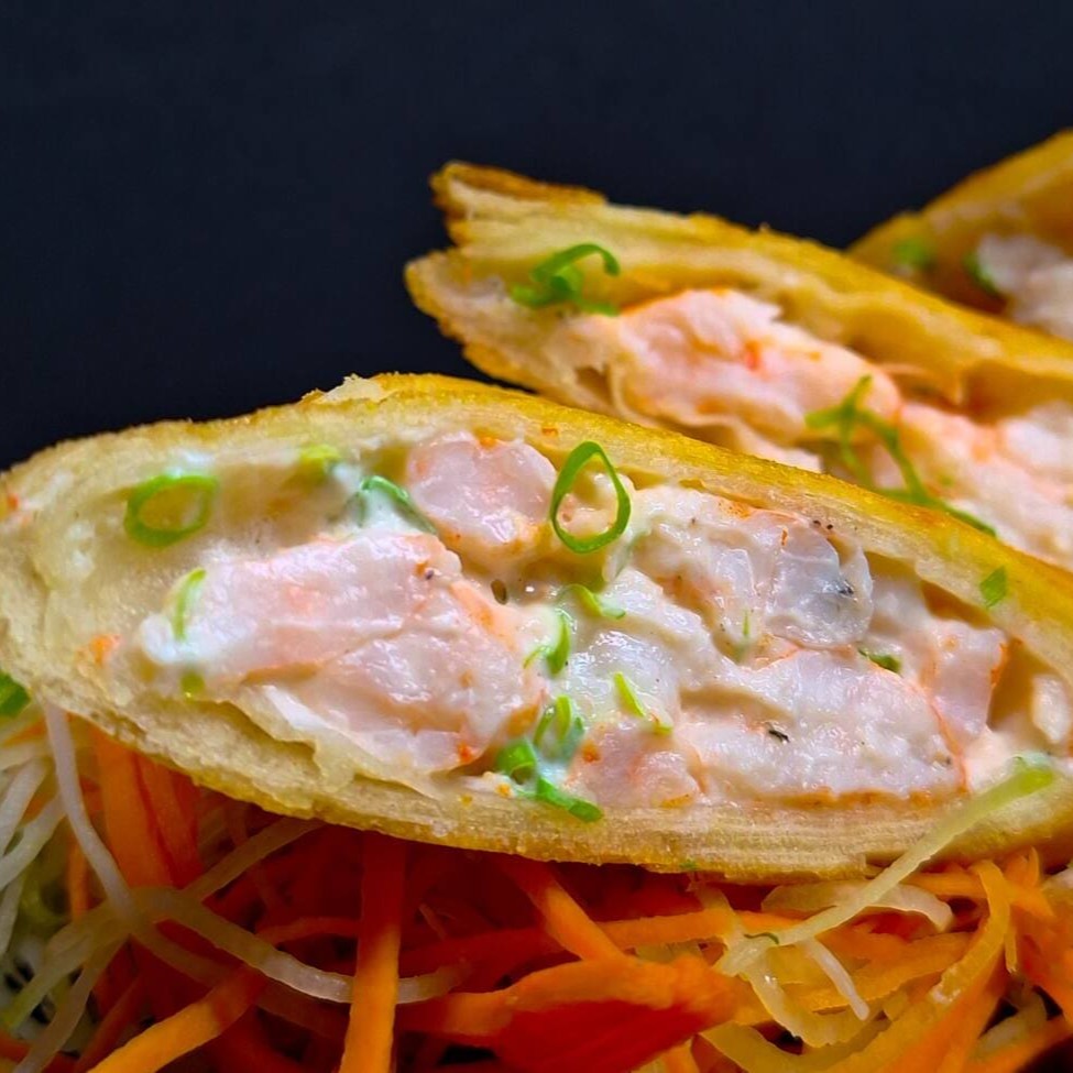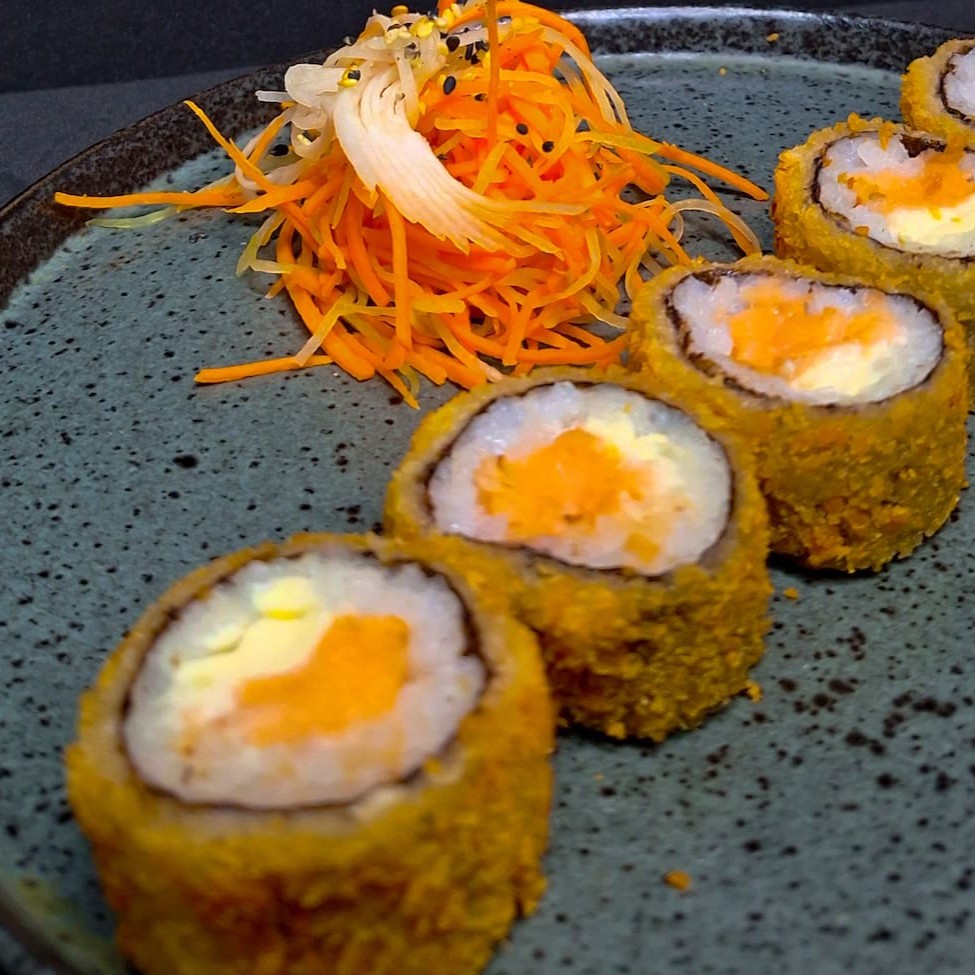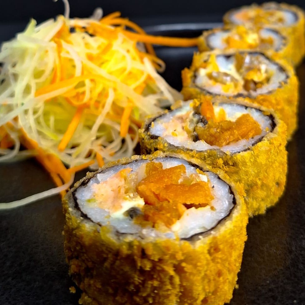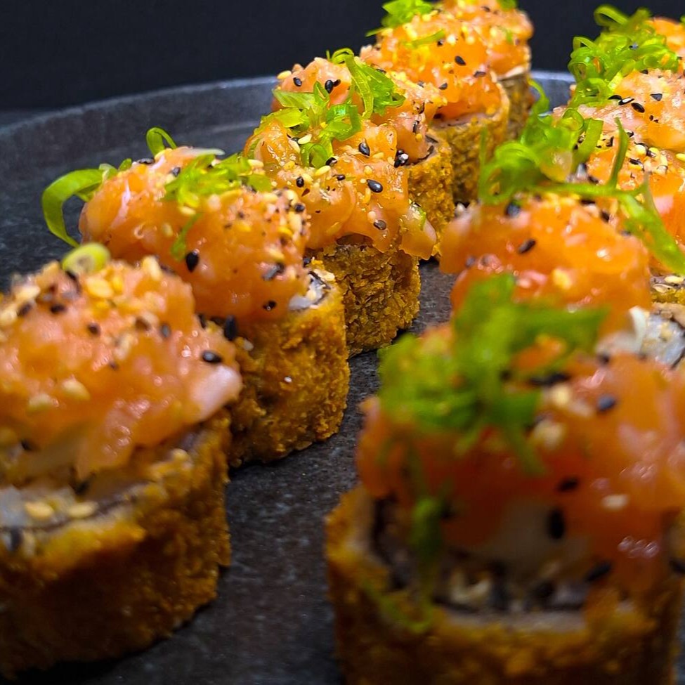 Uma releitura criativa e irresistível: hot roll empanado e frito na delicada massa de harumaki, recheado com salmão, camarão, kani e cream cheese — tudo isso sem arroz. Crocância por fora, cremosidade por dentro e muito sabor em cada mordida.