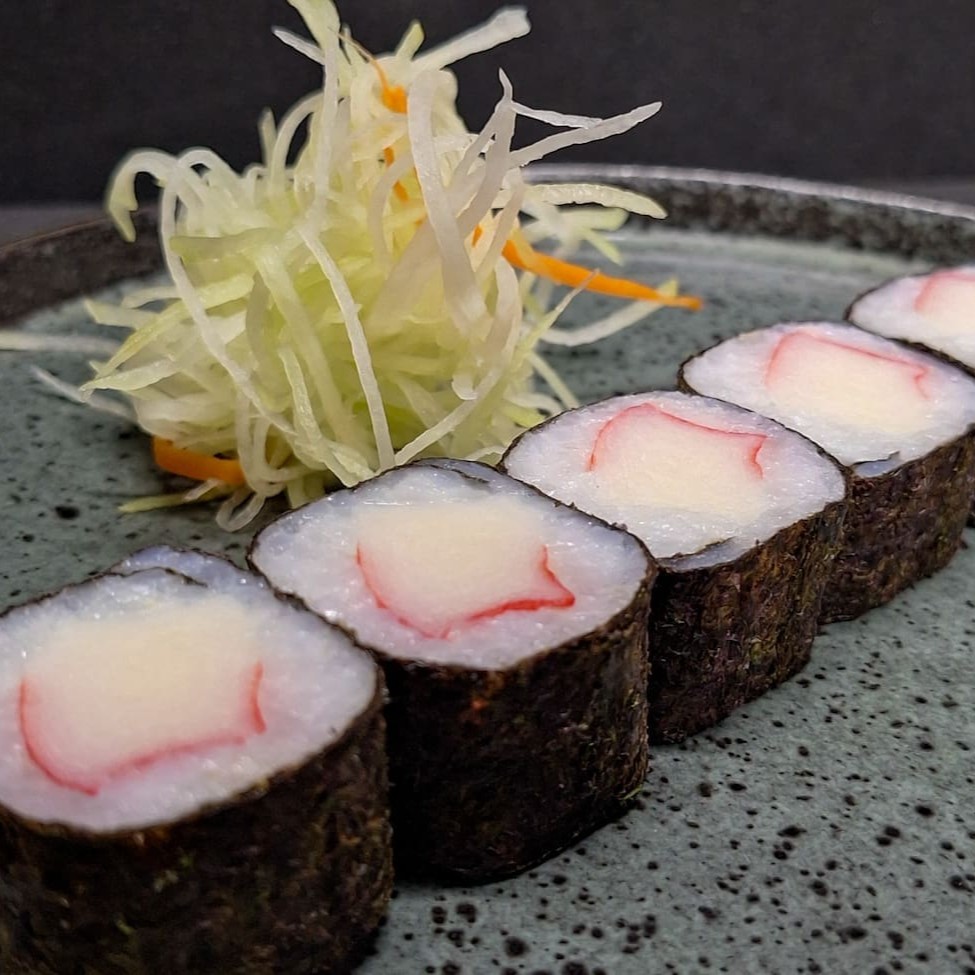 Delicado e saboroso: alga nori envolvendo arroz temperado e kani (carne de caranguejo). Uma opção leve e equilibrada, ideal para quem busca um sabor suave e clássico da culinária oriental.