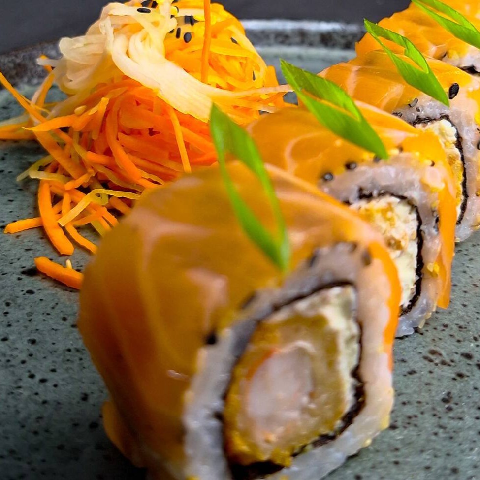 Delicadeza e sabor em cada camada: recheado com camarão empanado crocante por dentro e envolto por uma manta fina e suculenta de salmão fresco por fora. Uma experiência única que combina textura e frescor em perfeita harmonia.