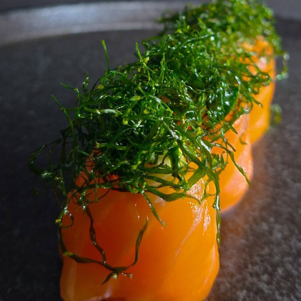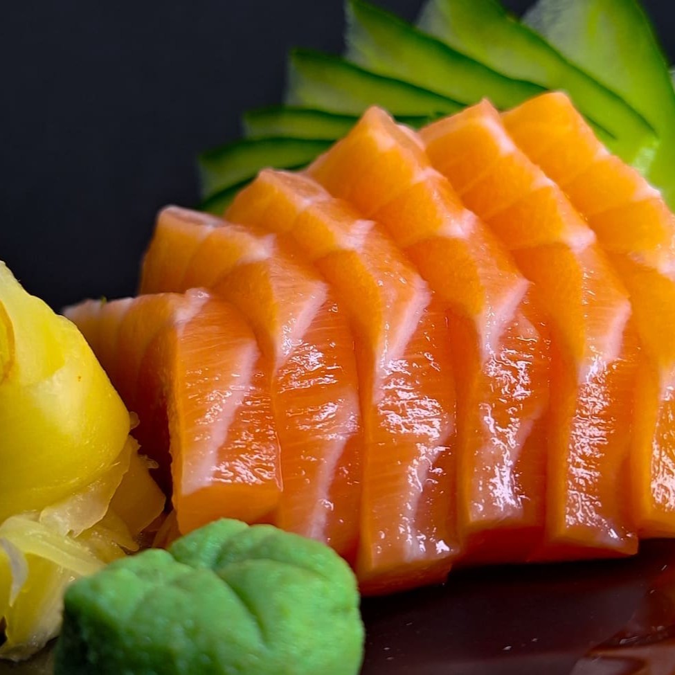 Fatias delicadas de salmão fresco, cortadas com precisão para realçar o sabor e a textura. Puro, leve e sofisticado — a essência da culinária japonesa em sua forma mais elegante.