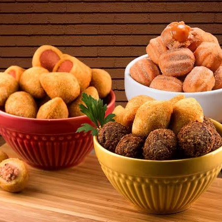 Aquele combo pra quem quer experimentar de tudo um pouco! Escolha 30 mini salgados entre nossos sabores irresistíveis: mini coxinha de frango, mini bolinho de queijo, mini bolinho de pizza, mini risole, mini croquete de charque e mini bolinho de carne. Perfeito pra dividir ou saborear sozinho! (Aproximadamente 30 Gramas Cada Unidade!)