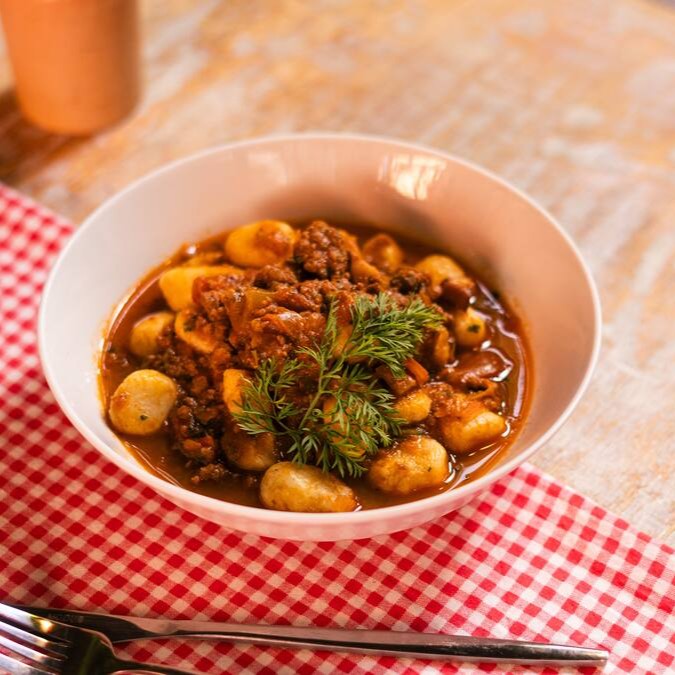 (Clássico da região de Bologna, é elaborado com carne bovina e suína, vinho tinto, ervas aromáticas e tomates e cozido lenta e longamente extraindo cada nota de aroma dos ingredientes. Tradicional intenso e nada óbvio!)