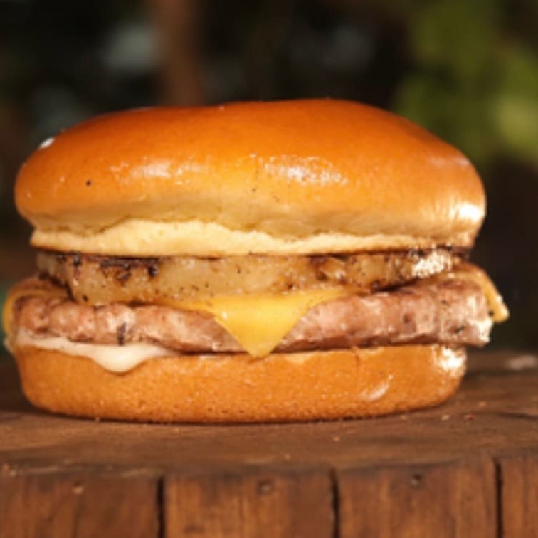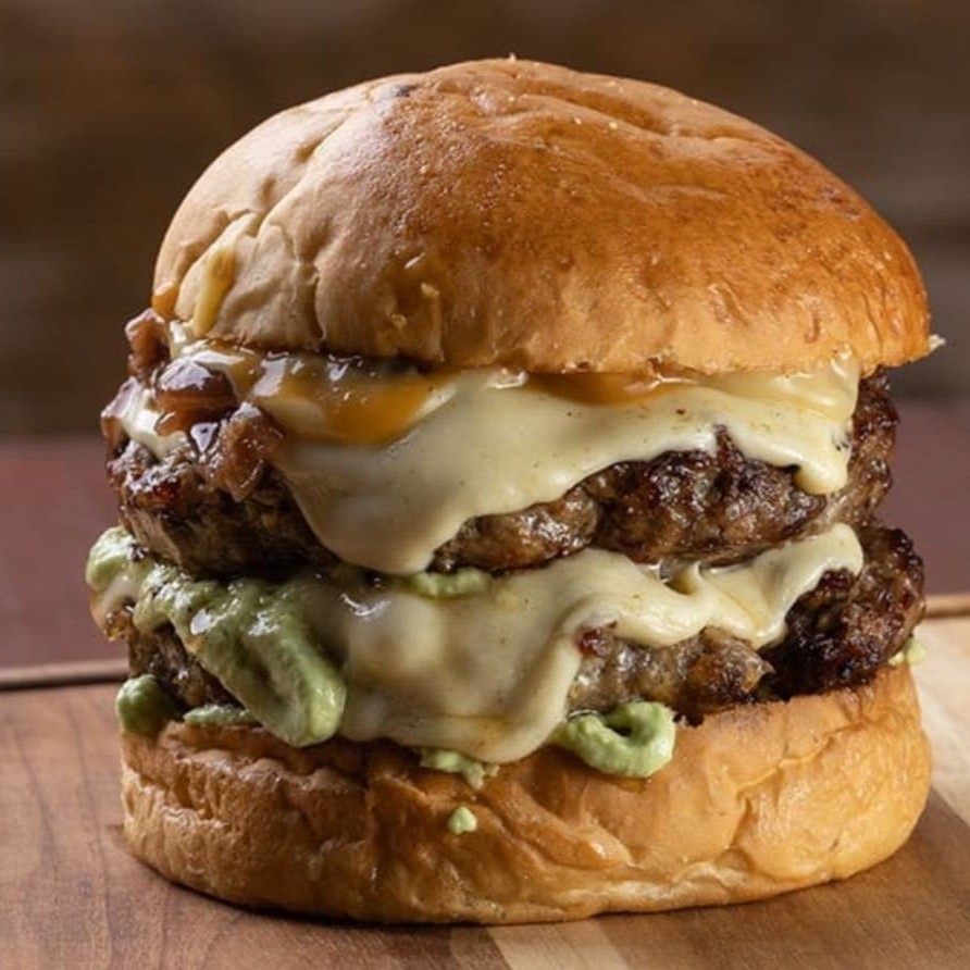 Pão artesanal, duas carnes artesanais 130g, duas fatias de queijo muçarela, cebola caramelizada, molho da casa.