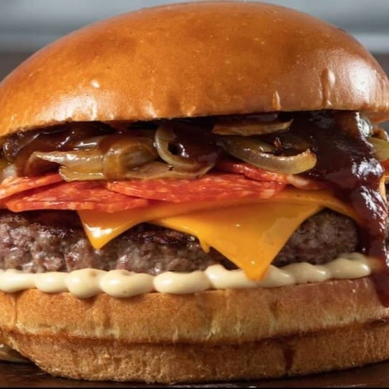 Sensacional e suculento hambúrguer de peperone é composto de Pão artesanal, queijo muçarela, peperone, maionese especial da casa, duas carnes Picles e cebola caramelizada.