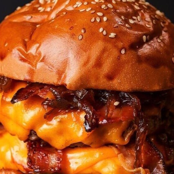 Pão arsenal, 2 blend bovino 100gr, 2 fatias de queijo muçarela, 2 porção bacon fatiado, molho especial da casa, alface americana e cebola caramelizadas