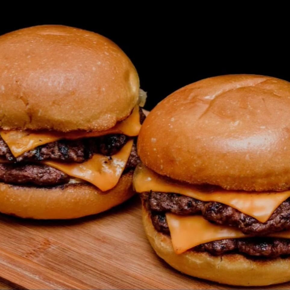 São dois dos mais deliciosos hambúrgueres de cheddar artesanal da região por um preço ainda melhor.