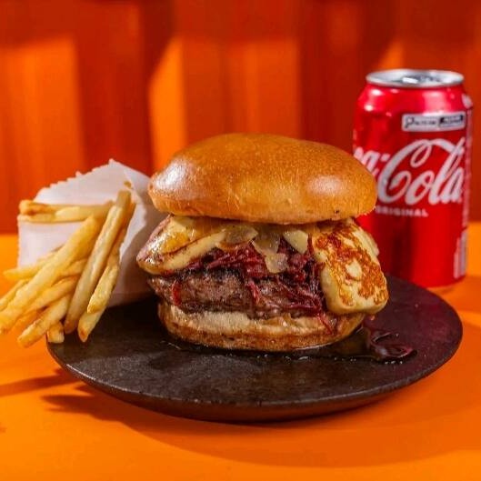 Pão brioche amanteigado ,um delicioso e suculento brend 90g,ovo,queijo mussarela,molho cheddar, verduras bem fresquinhas com a cebola caramelizada no shoyu e um delicioso molho especial
