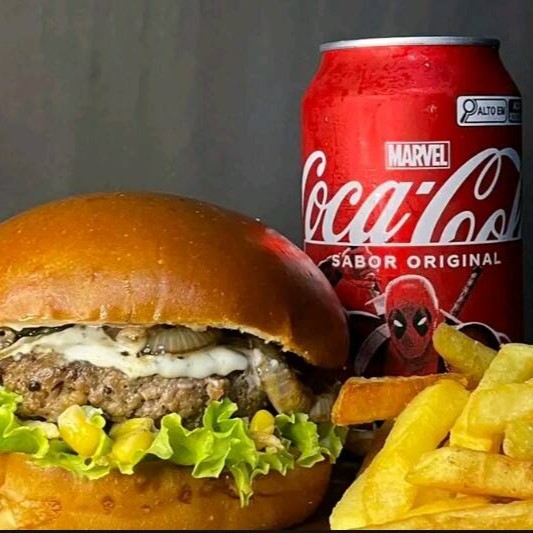 Pão especial, carne artesanal 100g,queijo coalho,charque assada,cheddar,verduras ( cebola caramelizada) e molho especial +batata frita+coca cola lata