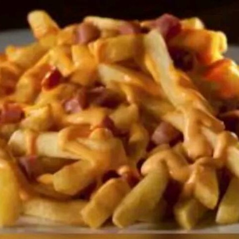 250g de uma delíciosa porção de batata frita bem crocante com bacon e calabresa frito e tostadinho e um maravilho creme chedar