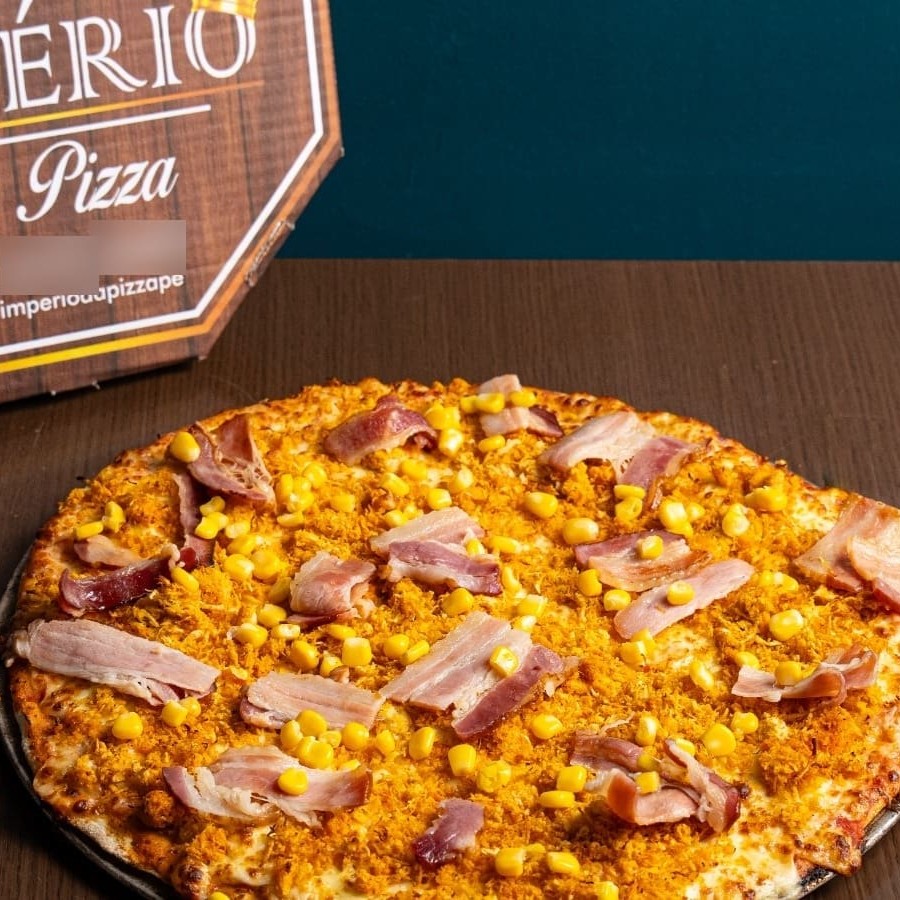 Molho de tomate artesanal, Queijo Mussarela, Frango, Bacon, milho