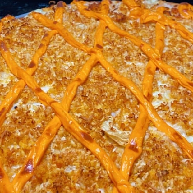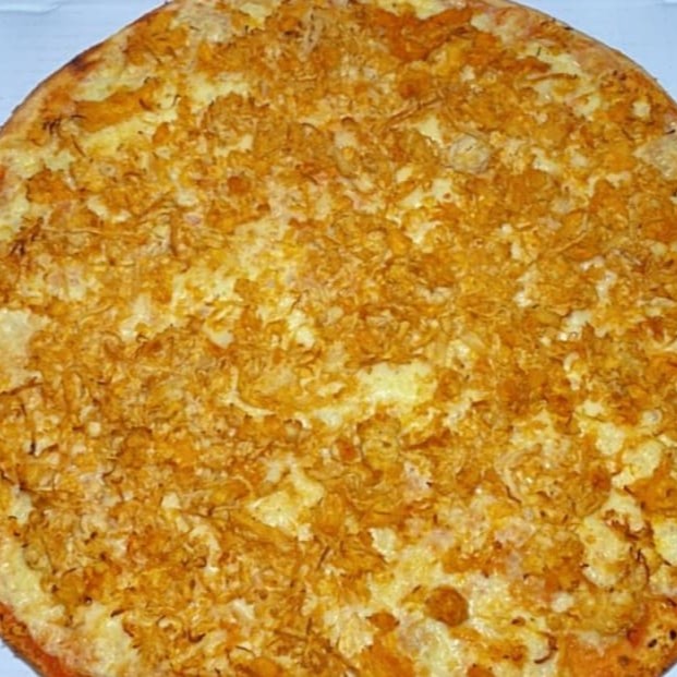 Molho de tomate artesanal, carne de sol, queijo coalho, cebola, Catupiry e uma camada De Queijo Mussarela Por Cima de todo esse recheio.