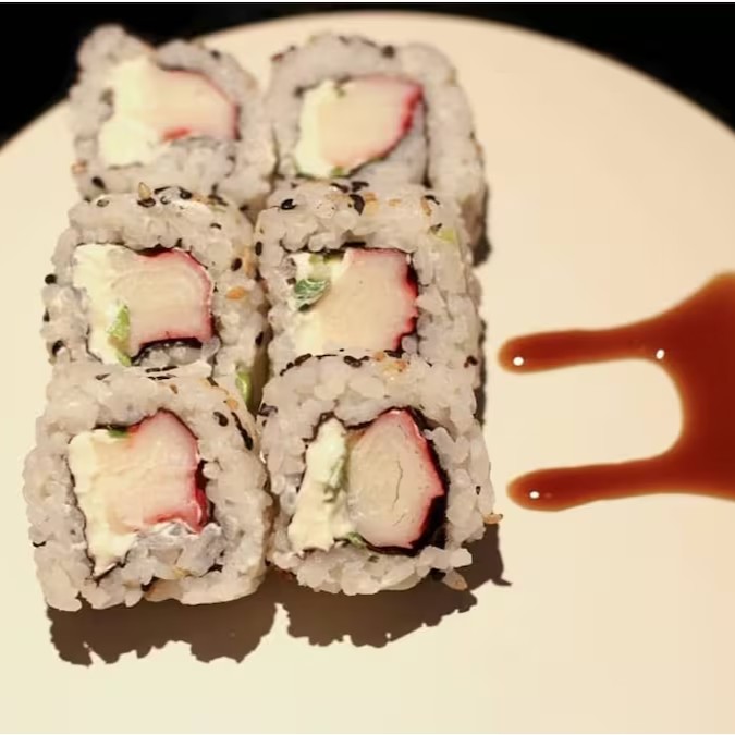 (10 unidades) Alga em volta,arroz,cream cheese, salmão, Kani, peixe branco ou Pepino e cebolinho.