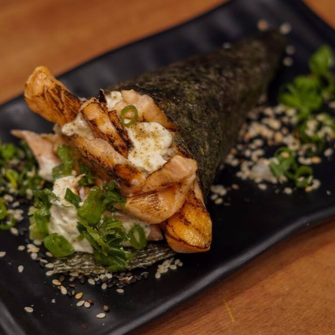 O Mais Pedido , Temaki Carioca , uma Explosão de Sabores , recheado com o Nosso Delicioso Salmão Grelhado.