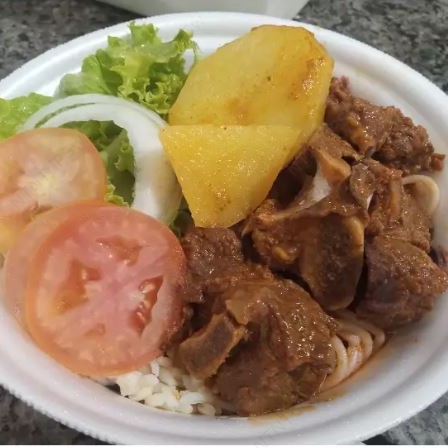 Acompanha feijão, arroz, macarrão,purê de batata, salada e farofa