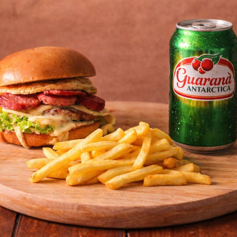 1 X- Egg Calabresa + 1 Batata-frita (200g) + Guaraná Antártica (Lata ) #combos #promoçoes #guarana #batata #hamburguer