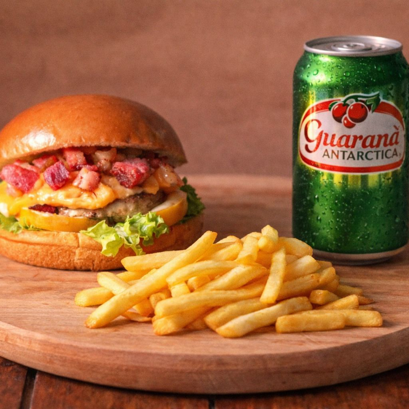 1 Burguer Cheddar Bacon 120g (artesanal) + 1 Guaraná Antártica (lata) + 1 batata-frita (200g) #promoção #combos #coca-coca #