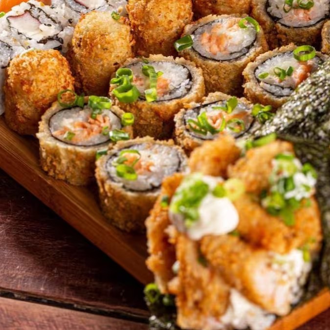 Sushi deliciosamente preparado com Camarão de alta qualidade, Cream Cheese orignal, Arroz Japonês, empanado com Farinha Japonês e frito, finalizado com uma cobertura generosa de Pasta de Camarão empanado.