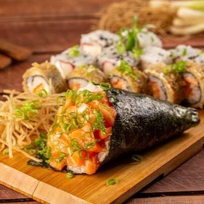 Super combo composto por 10 deliciosos Cariocas de Salmão, 10 Uramaki de Kani + 1 Temaki Salmão Filadélfia.