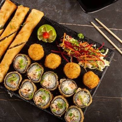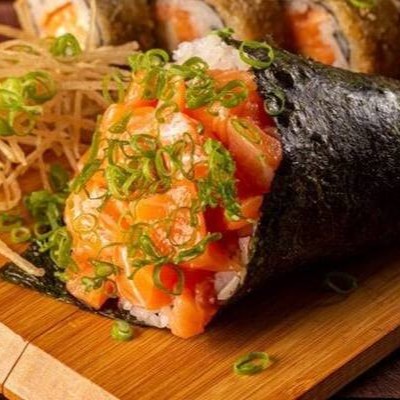 Preparado com uma deliciosa Pasta de Salmão, Cream Cheese Original e Arroz Japonês, finalizado e envolvido em uma massa de Rolinho Primavera.