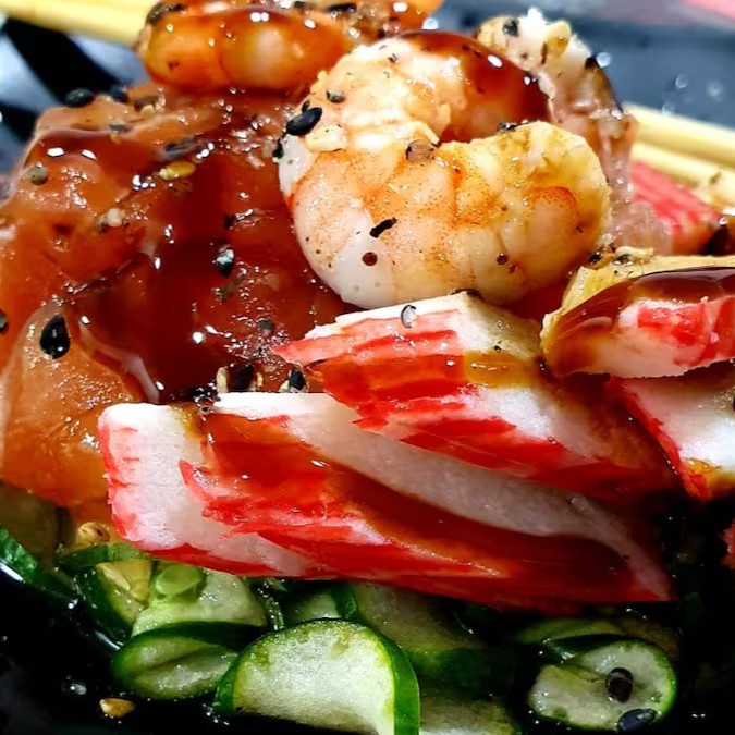 Laminas De Pepino Japones Ao Molho Da Casa, Camarao, Salmao E Kani.