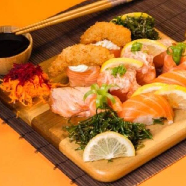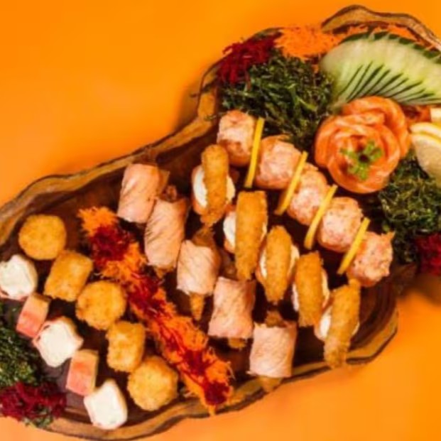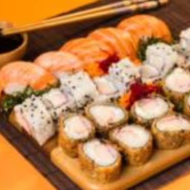 10 Cariocas Salmao - 10 Uramaki Salmão - 10 Hossomaki Salmão - 4 Nigiri Salmão - 6 Sashimi Salmão E 5 Kani E Queijo