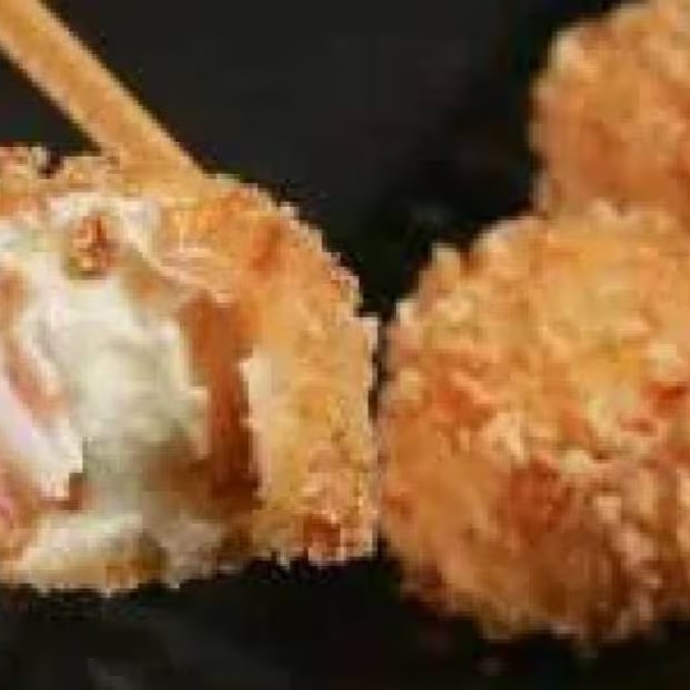 Lamina de kani com cream cheese empanado e frito.