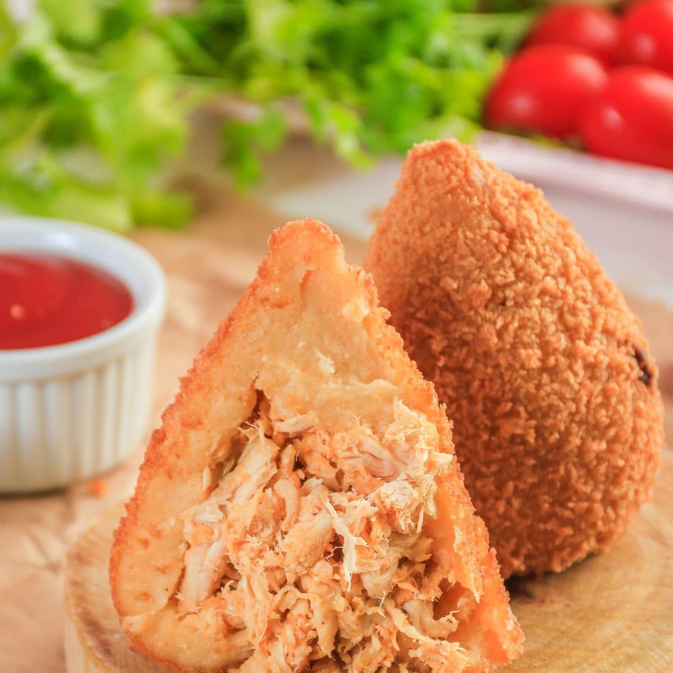 2 coxões de Massa temperada e Recheio de Frango Temperado com Requeijão; Massa extra crocante; . Foto Original do nosso produto.
