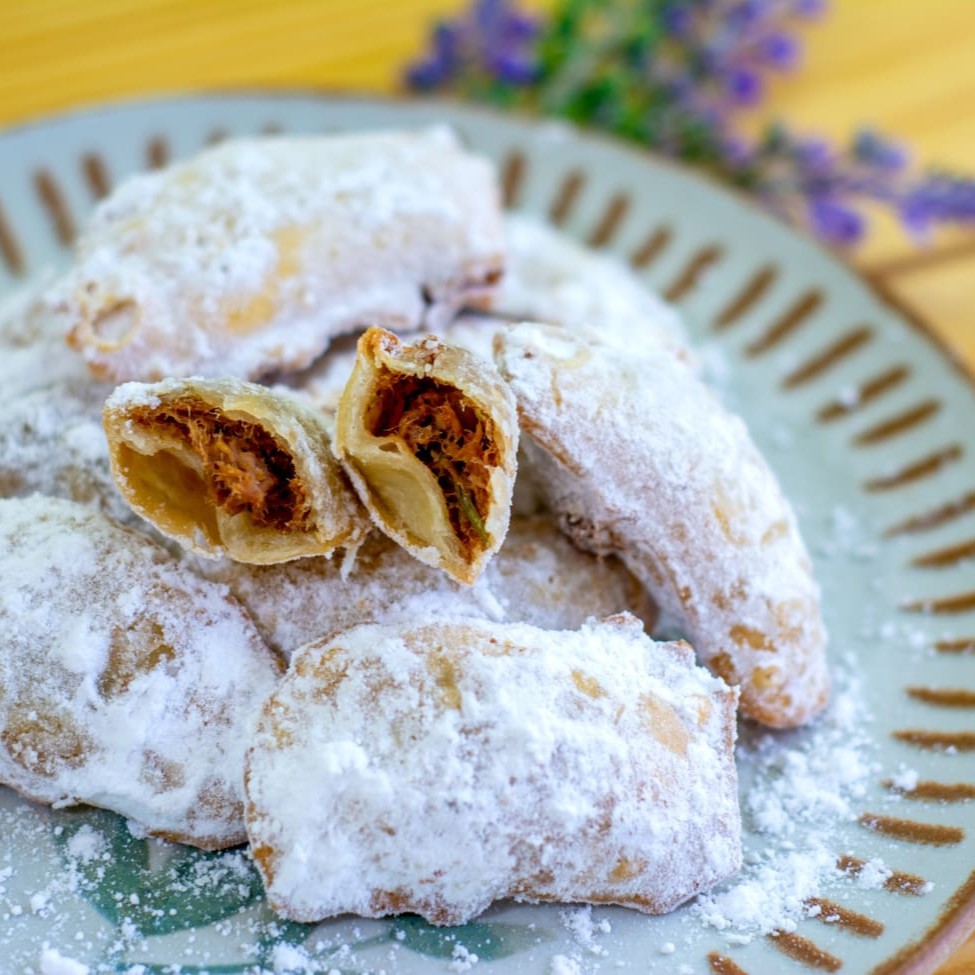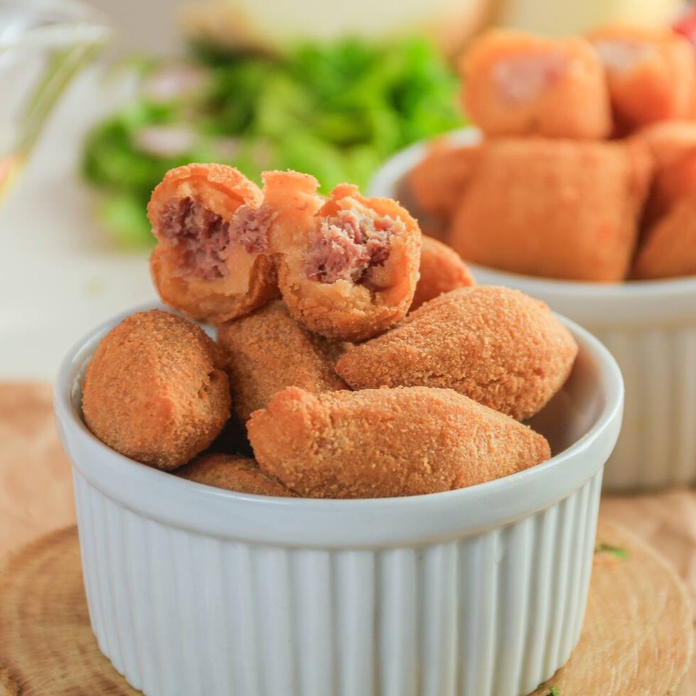 Salgado tamanho festa , com massa de batata e recheio de charque temperada. Kit com 10 unidades