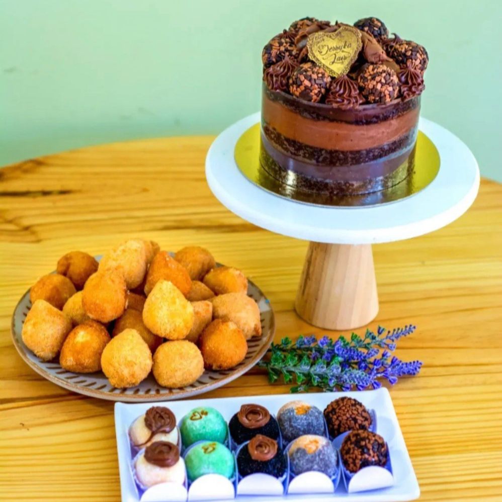 Torta 1kg( sabor a combinar com a loja, de acordo com a disponibilidade) 25 coxinhas e 10 doces Gourmet
